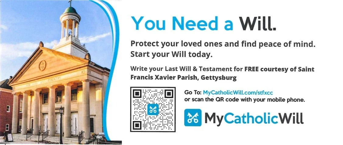 As your pastor, I care about the overall well-being of our wonderful parish. But, in fact, our parish family is composed of lots of individual families. And so, my concern is for the well-being of all of our families. Of course, spiritual well-being is the utmost. But it's also important to attend to the material well-being of our parishioners, too. In this regard, I'd like to invite you to listen to the following presentation on stewardship. In part, stewardship is about tools that can help you protect your assets and fulfill your legal obligations, while considering how doing so can also potentially benefit the mission of Christ here at St. Francis Xavier.